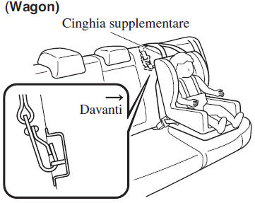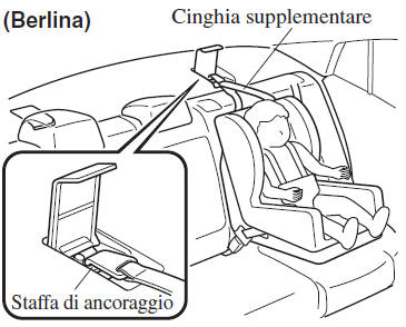 Usare le posizioni per la staffa d'ancoraggio indicate quando s'installa un seggiolino per bambini equipaggiato con cinghia supplementare.