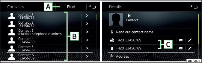 Fig. 203 Elenco dei contatti telefonici / dettagli dei contatti